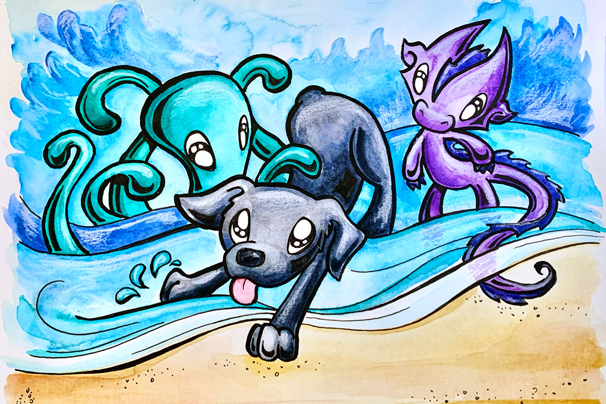Custom paintings and portraits, with a Skoshie & Friends style